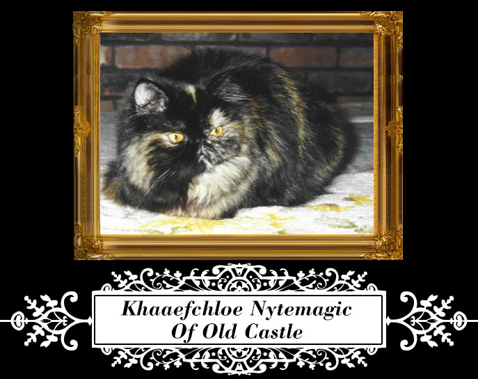 Tortoiseshell Persian and Grandmother of many beautiful kitties at Old Castle.
